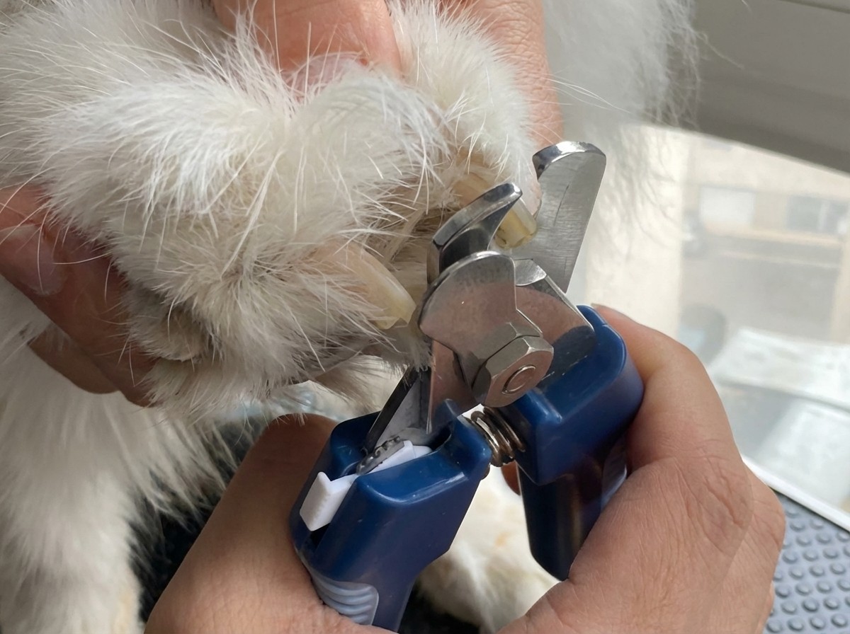 Utilisez un coupe-griffes spécifique (type "guillotine" ou "pince") bien affûté. Une lame émoussée écraserait la griffe au lieu de la trancher, causant de la douleur.